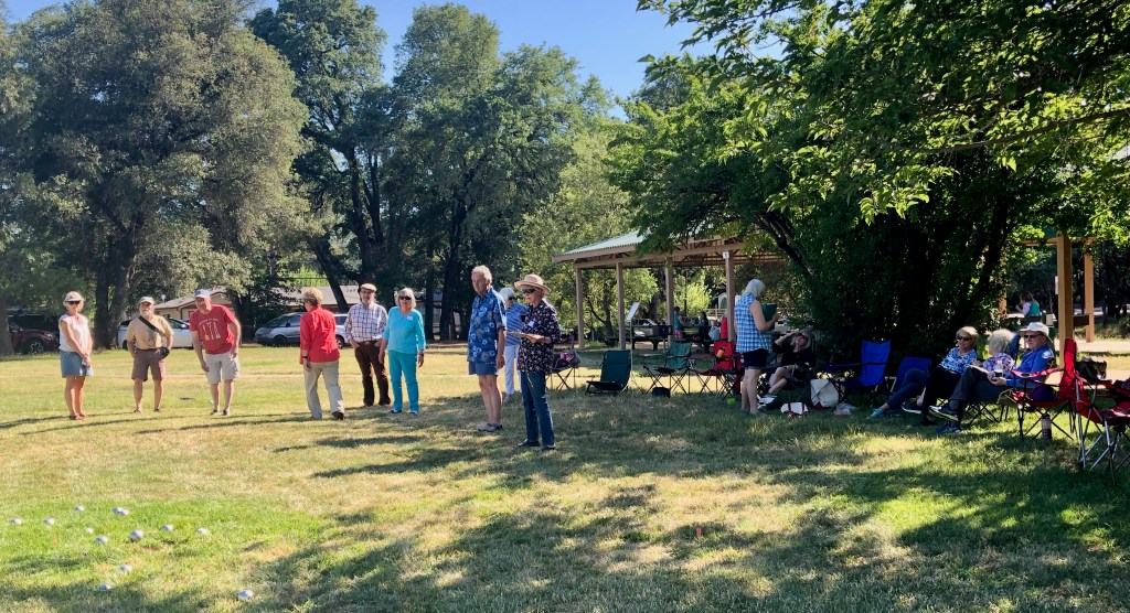 Joy to the world! After cancelling the picnic along with just about everything else in 2020, normalcy returned as the gang – all vaccinated – gathered once again at Gateway Park for our May picnic. Organizers Joe and Diana ensured the always highly competitive Pétanque tournament – aka the game of boules – would be held! Those who don’t take part in our club game get to eat, drink, and be merry… rarely watching the tournament. Photos by June, Carol, and Gary.