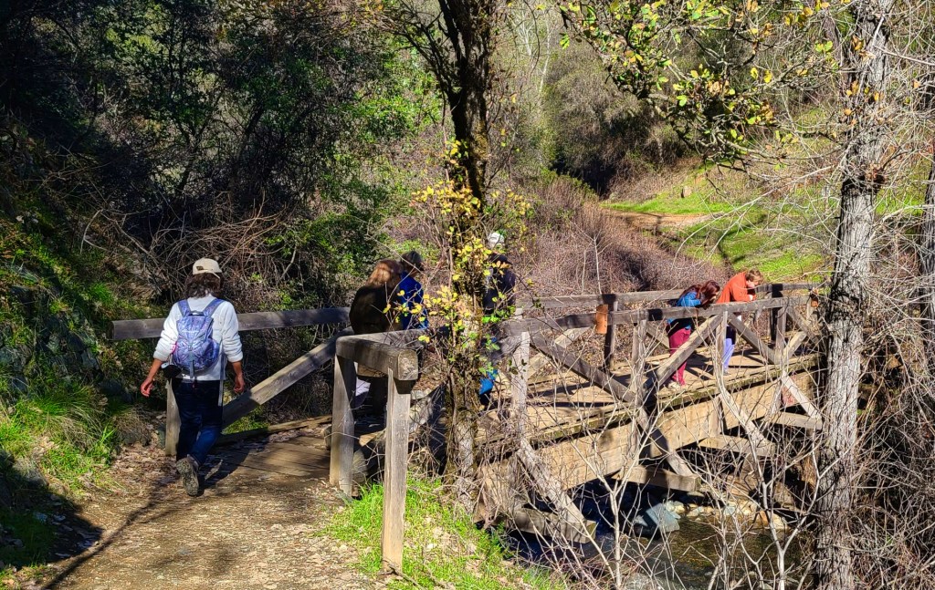 Low temperatures resulted in a cancellation of this year’s traditional January 2nd New Year’s Paddle on Lake Englebright. Laurie and Dennis thought it would be the perfect day for a hike on the Buttermilk Trail at South Yuba State Park, and Peter, June, and Rachel joined them. “We may not have been ON the water, we sure did see a lot of torrential water, with all the small waterfalls, and the Yuba flowing fast and furious,” said June. The weather ended up being sunny and warm and a great day for a fun hike along the Yuba River. Photographers June and Peter took some photos with their iPhones and shared them with us. Hard to believe just a few miles up the road, some of our members were still without power, and shoveling snow.