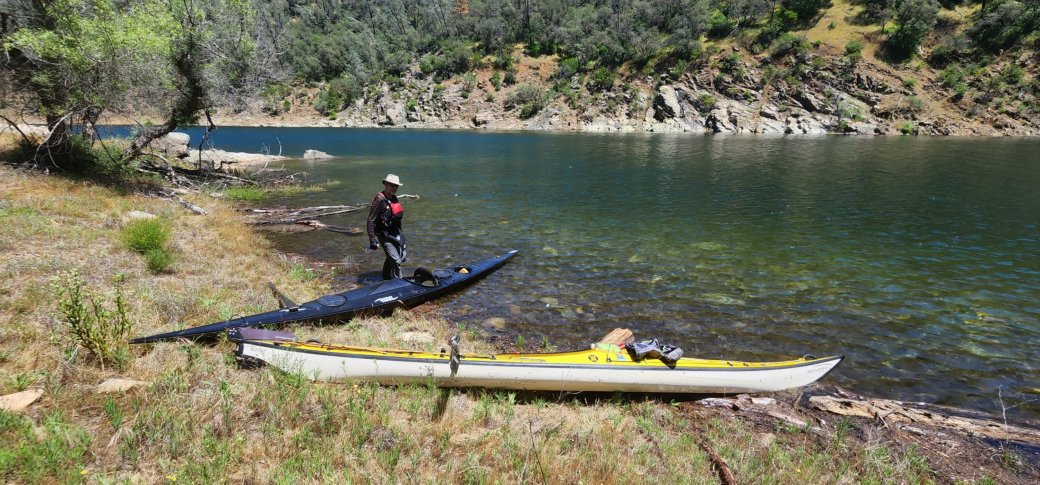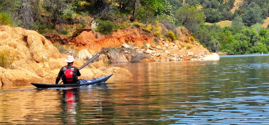 Chris wanted to paddle Folsom Lake and invited others to join his Pop-Up Paddle. The weather had been hot in the Sacramento Valley with big winds. Nevertheless, I joined Chris at Rattlesnake Bar and we launched at 10:30 from a grassy area near the boat ramp. Winds were calm… 85 and sunny.