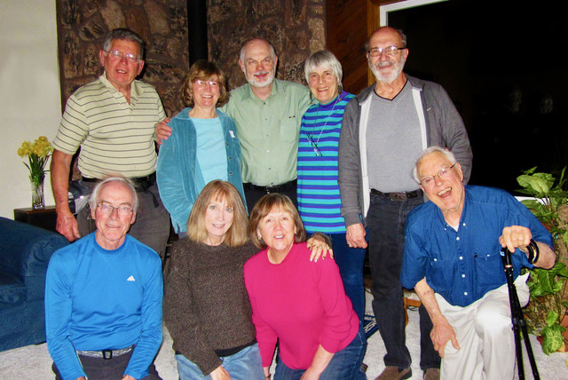 2012-2013: Kit Wiegman (Founder), Marlee Chamberlin (Program Planning), Gene Harris (Newsletter), Wendy Thibeault (Membership), Ron Brunmeier (Trip Planning), Dick Lyon (President), June Anderson (Secretary), Lani Brunmeier (VP/Trip Planning), Dave Bishop (Treasurer), Missing: Ron Wright (Webmaster)