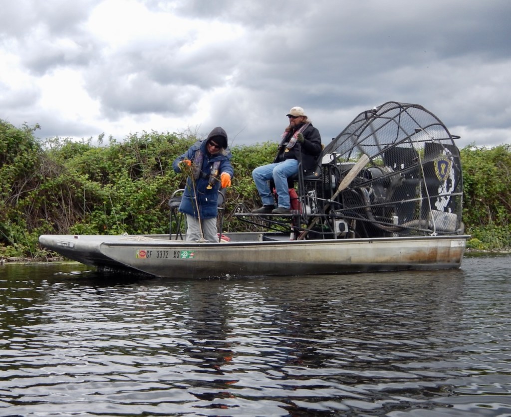 On our Clear Lake camping trip, we paddled the tule wonder of Anderson Marsh. We expected to see tules and wildlife, but not to encounter boats more commonly seen in places like the Florida Everglades. We passed a group of fishermen in these air boats, where a boat with a submerged propeller would not be practical in the shallow, marshy water.