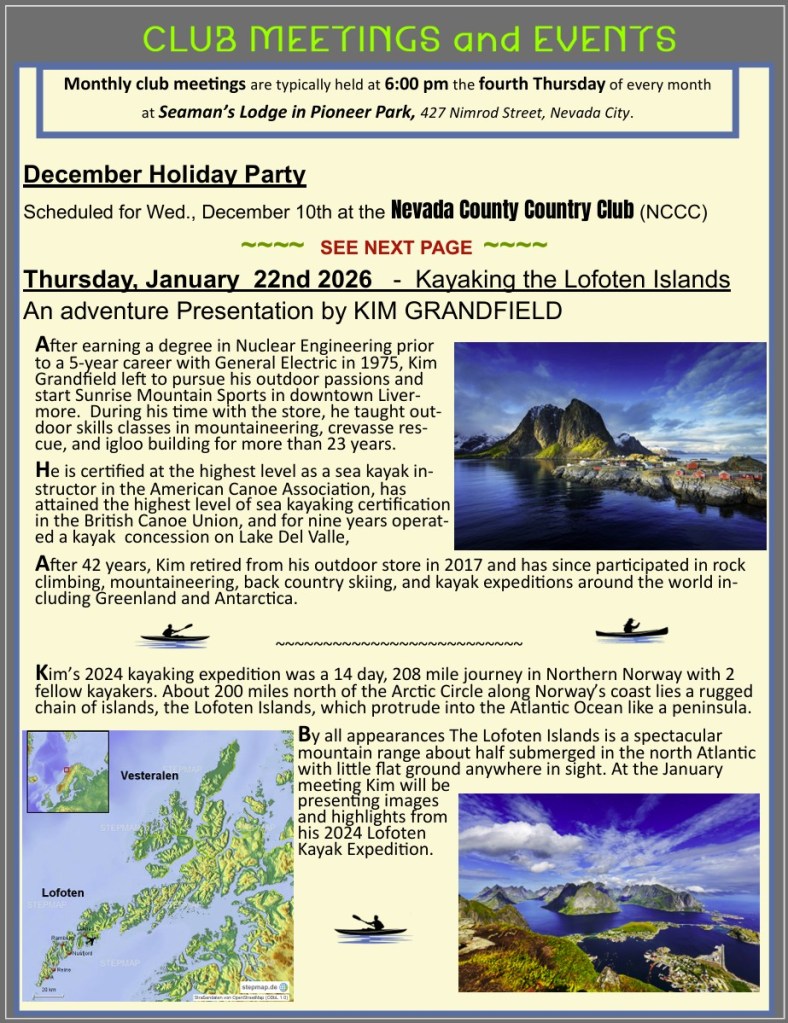 Deb Savoy is SNCKC’s board member who arranges all the programs at our monthly meetings. She is always looking for ideas on programs and presentations! If you have any, please contact Deb at 2bjsavoy@gmail.com or (530) 388-8654.